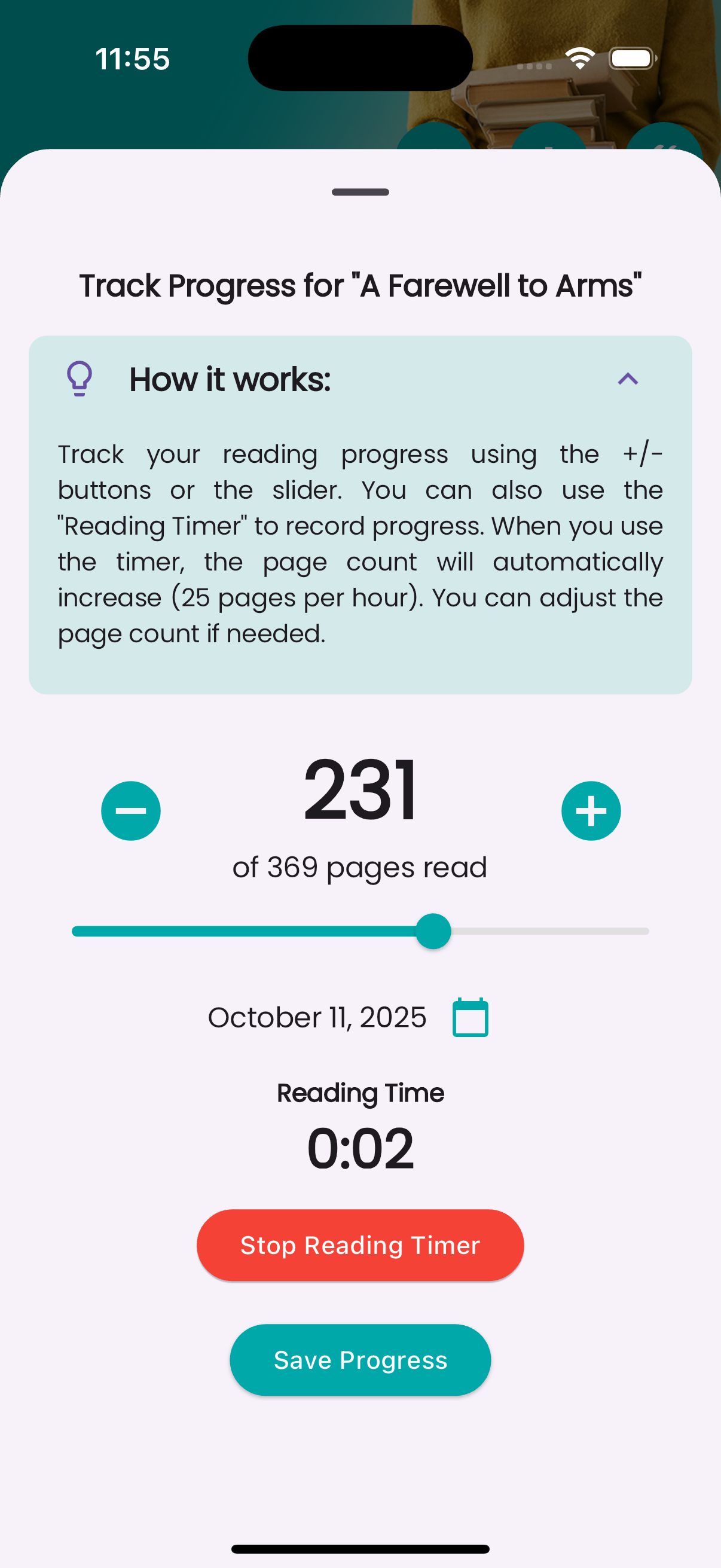 - โฑ๏ธ Monitor your reading habits and time spent per book